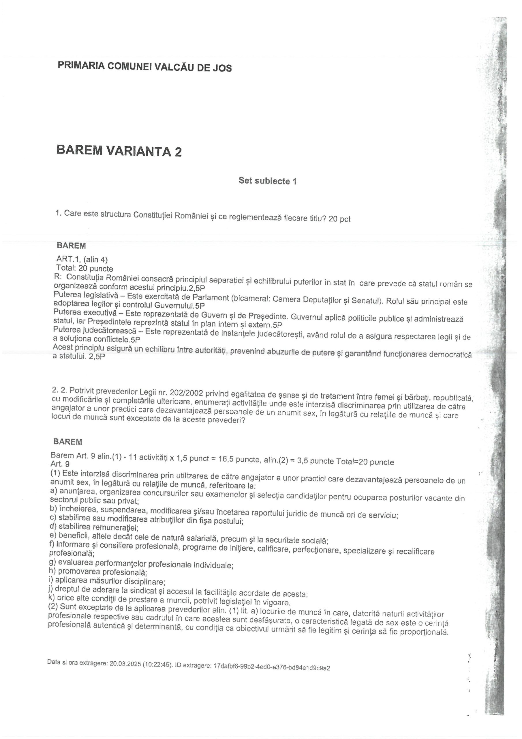 Borderou corectare subiecte concurs Stare Civilă din data de 20.03.2025