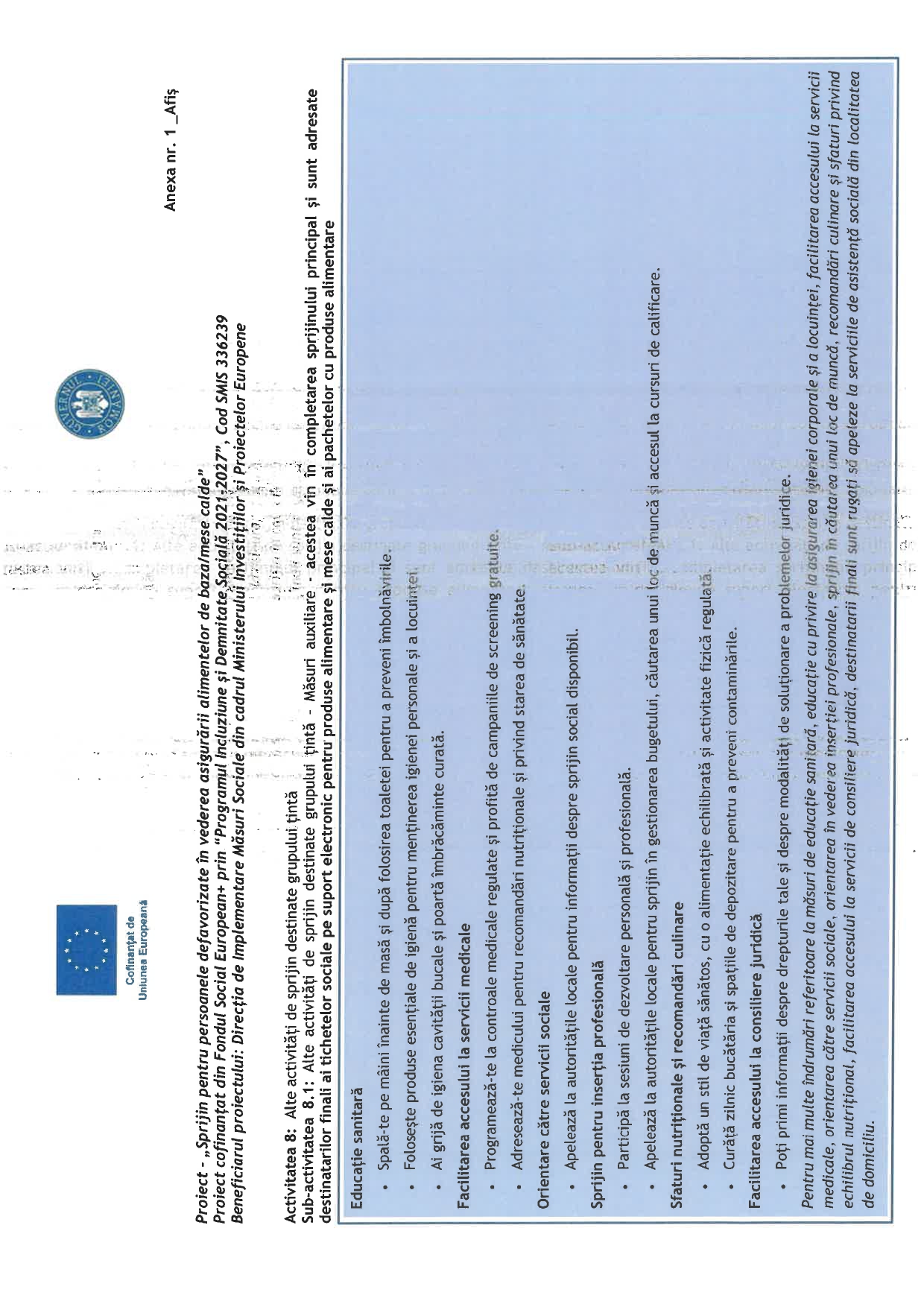 Anexa nr. 1 la – Instractiune de lucru privind implementarea unitară a măsurilor auxiliare pentru “Sprijin pentru persoanele defavorizate în vederea asigurării alimentelor de bază/mese calde” – Cod SMIS 336239